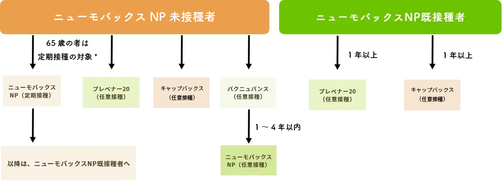 ※ニューモバックス接種後に、プレベナー20もしくはキャップバックスを接種した場合、以後ニューモバックスを5年ごとに再接種する必要がなくなります。(2025年9月30日 改訂版)